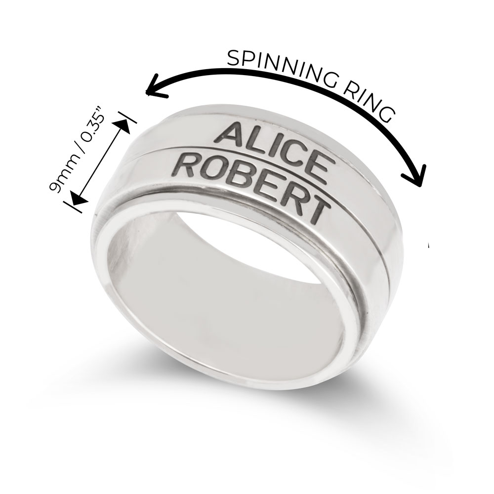 טבעת מסתובבת כפולה עם חריטת שמות אישית