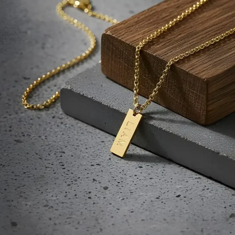 שרשרת לגבר עם תליון חריטה בהתאמה אישית – עיצוב נקי, נוכחות עוצמתית ומשמעות אישית.