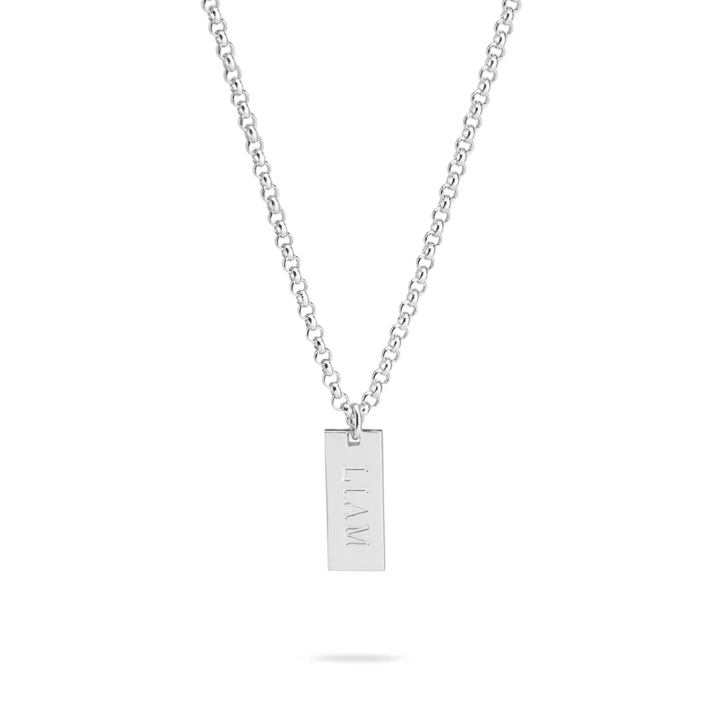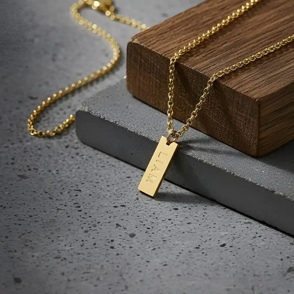 השרשרת כוללת תליון אנכי חלק עם מקום לחריטה מותאמת אישית – בצד אחד או בשני צדדים. עשויה מכסף אמיתי, וניתנת להזמנה בגימור כסף, זהב או רוז גולד. השרשרת עצמה פשוטה אך עמידה, באורך לבחירה שמתאים גם ללבישה לבד וגם לשילוב עם תכשיטים נוספים. כל תליון מיוצר לפי הזמנה – כך שהתוצאה תמיד ייחודית, אישית ובעלת ערך רגשי.