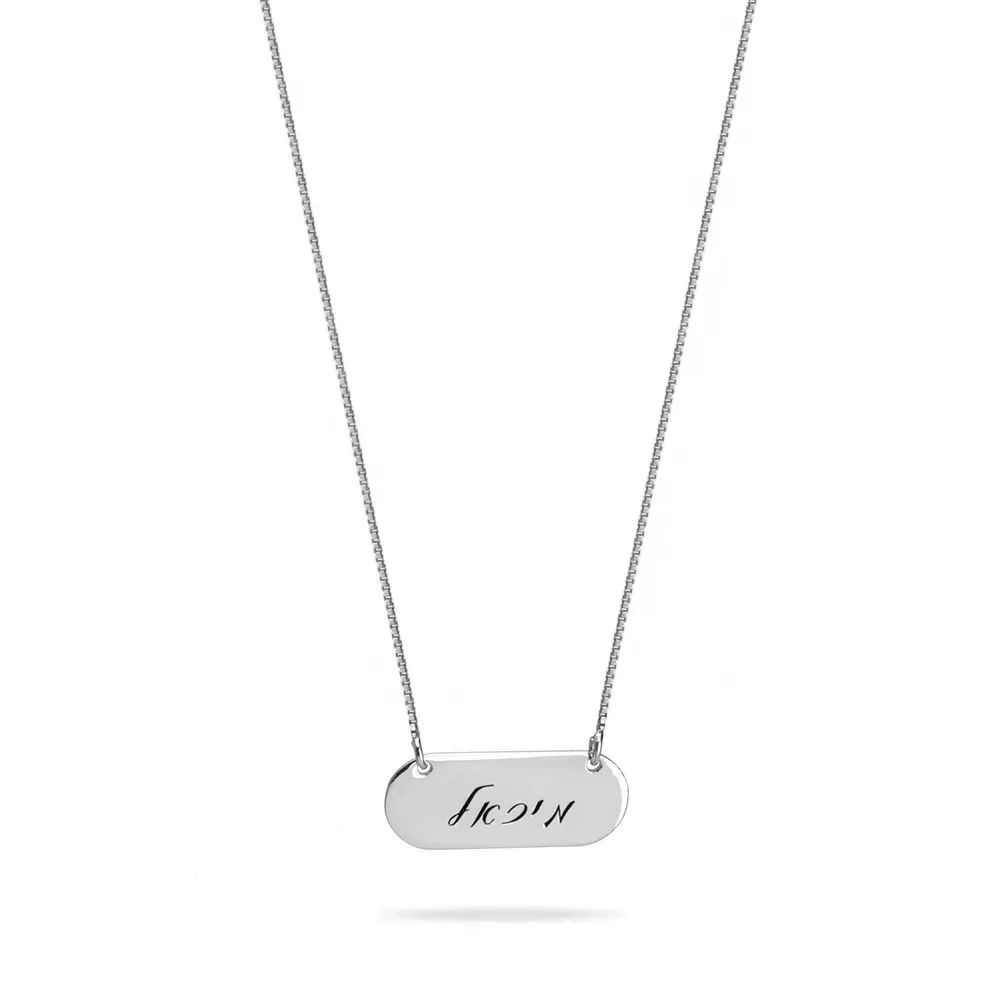 שרשרת פלטה מעוגלת עם חריטה בעברית