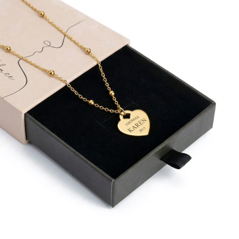 שרשרת תליון לב עם חריטה בהתאמה אישית – שרשרת חרוזים