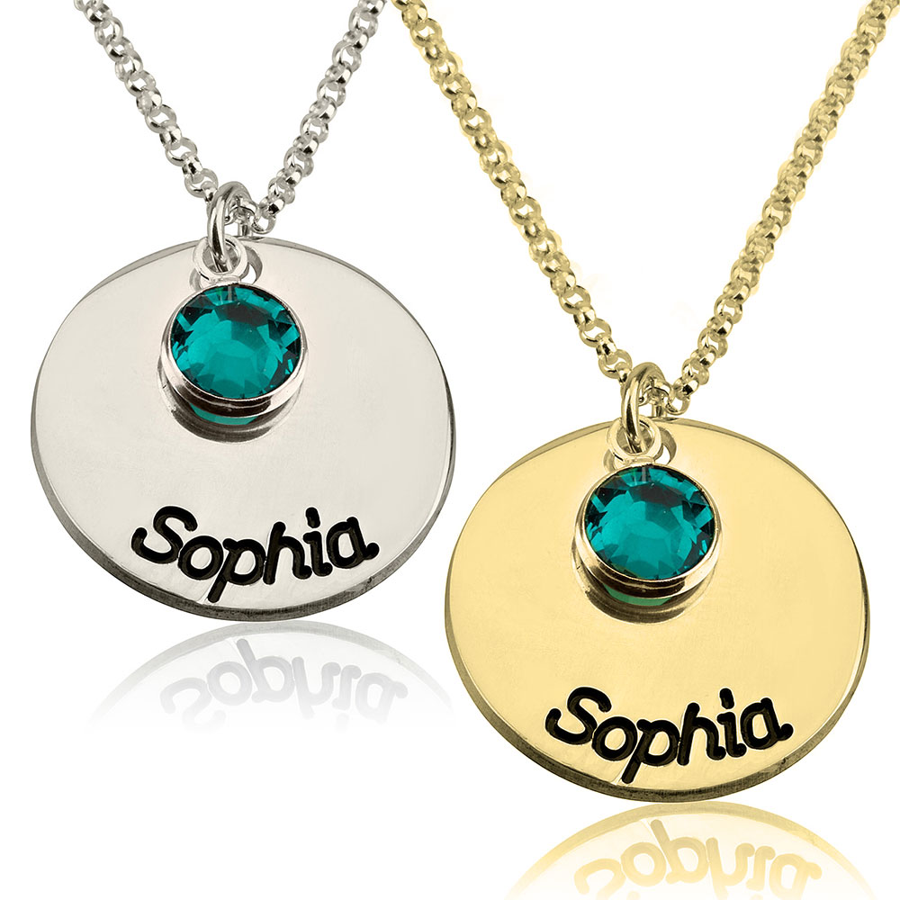 שרשרת דיסק עם חריטה אישית ואבן לידה