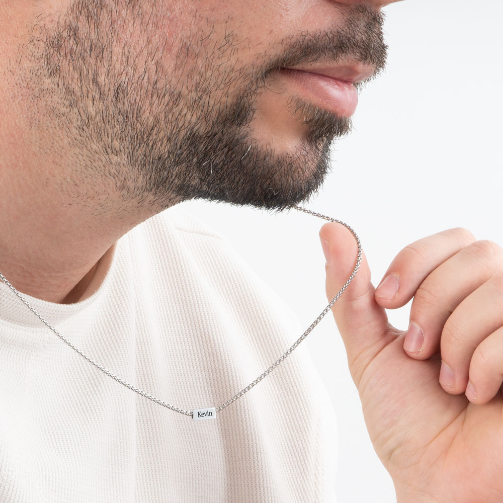 שרשרת חריטה אישית לגבר עם תליון בר מרובע בעיצוב נקי, מודרני ומלא משמעות.