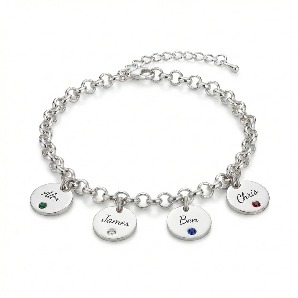 צמיד לאמא עם שמות הילדים ואבני לידה