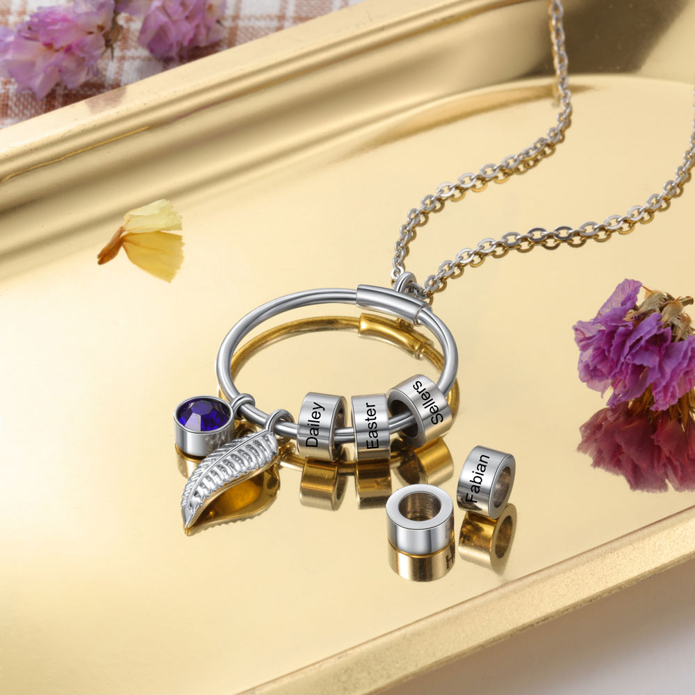 שרשרת עיגול לאמא וסבתא עם חרוזי שמות ואבן לידה