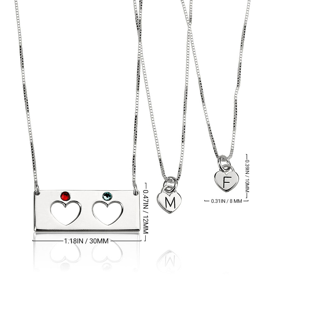 סט שרשראות אמא ובת עם אבני לידה ולבבות אישיים